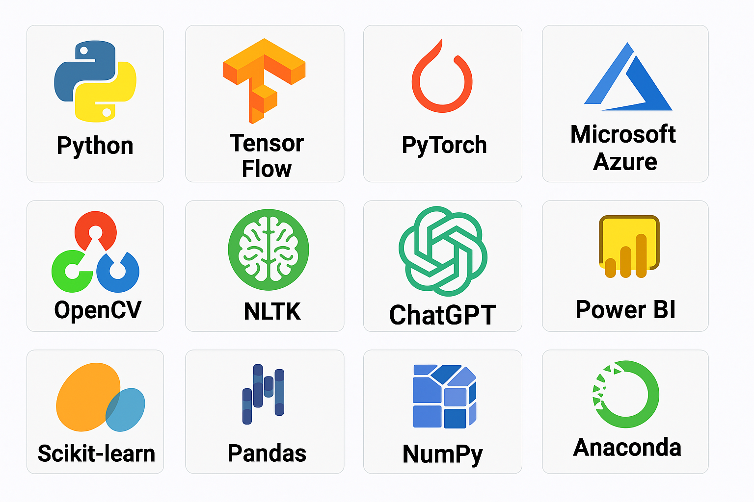 Get trained on the latest AI tools like Python, TensorFlow, PyTorch, OpenCV, and ChatGPT to stay ahead in the industry.